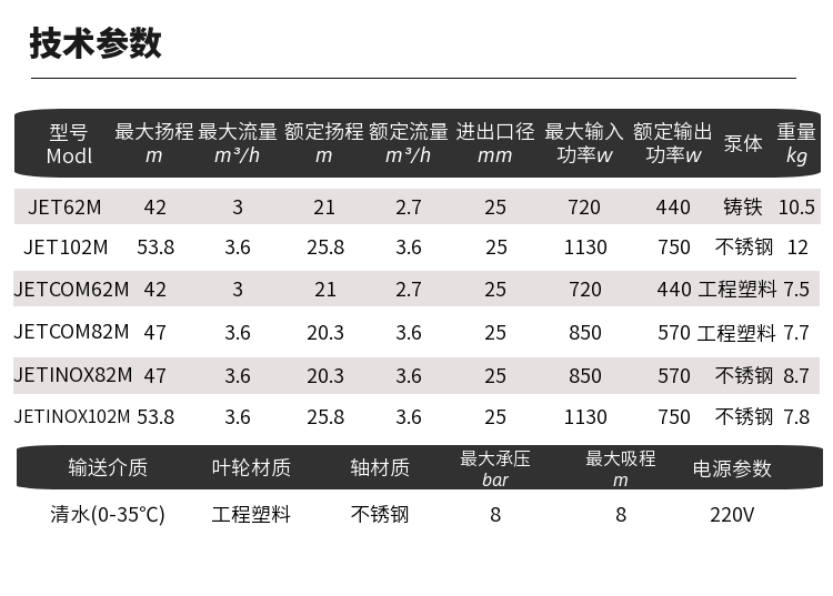 产品名称:自吸泵JET-JETCOM-JETINOX系列