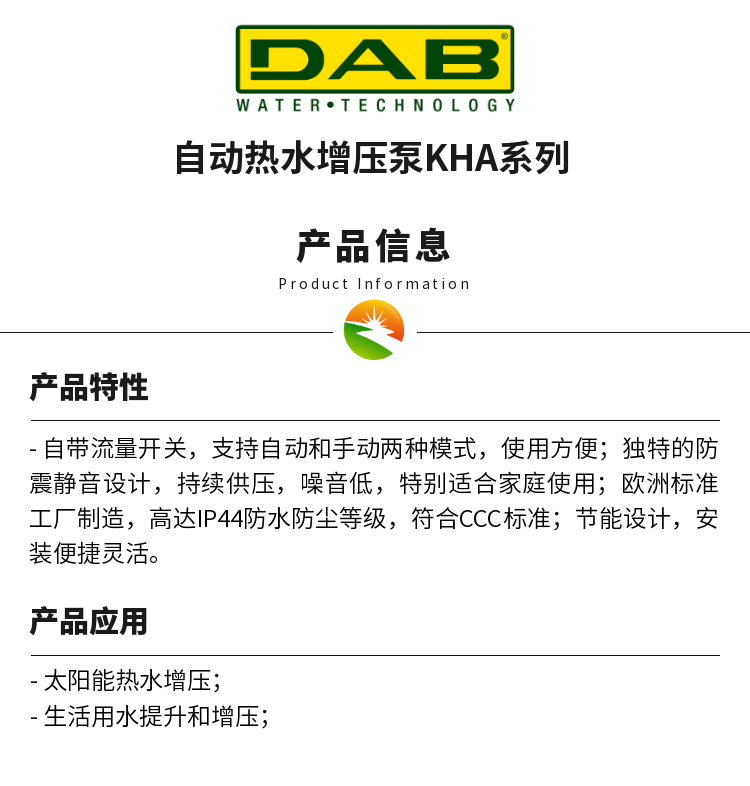 产品名称:自动热水增压泵KHA系列