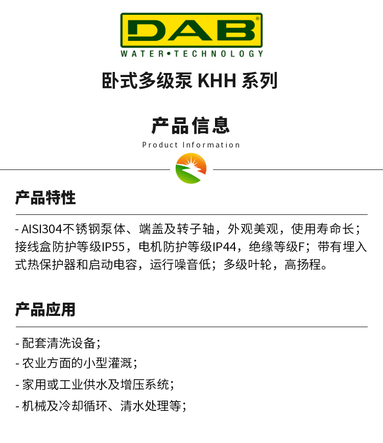 产品名称:卧式多级泵 KHH 系列
