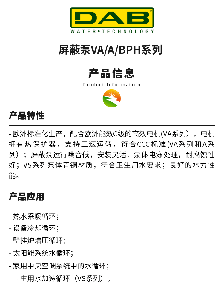 产品名称:屏蔽泵VA-A-BPH系列