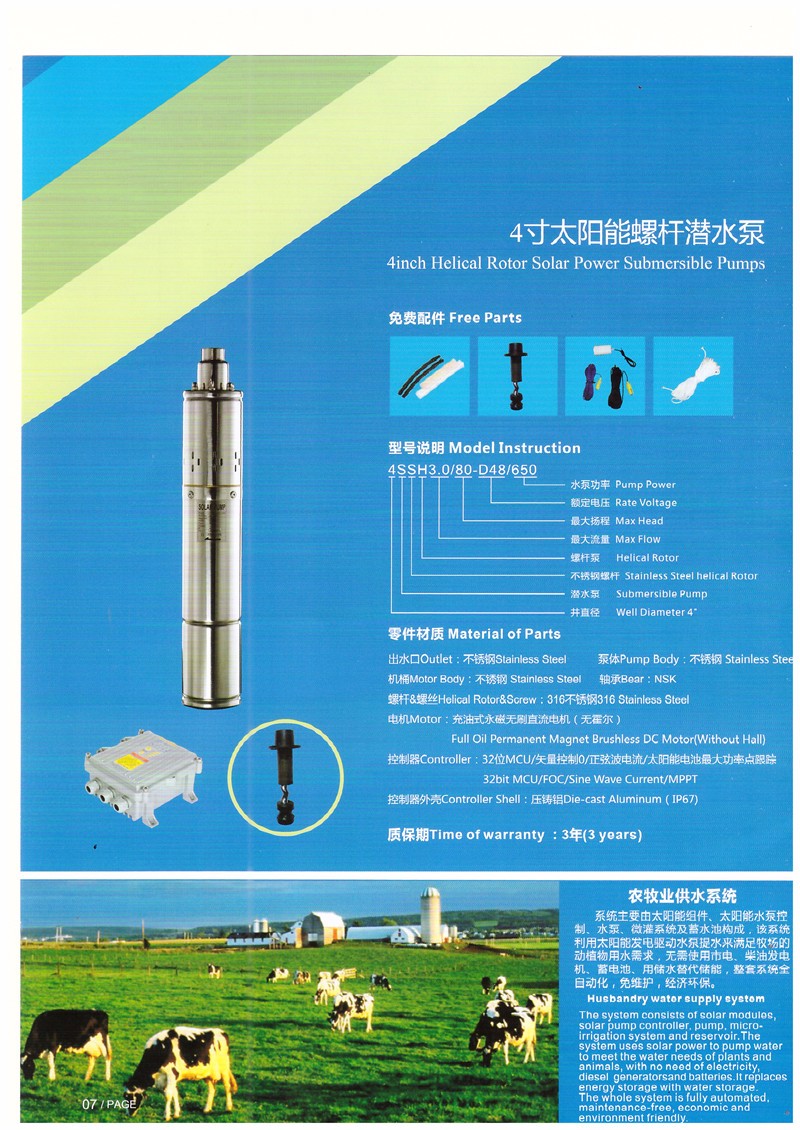 产品名称:4寸太阳能螺杆潜水泵