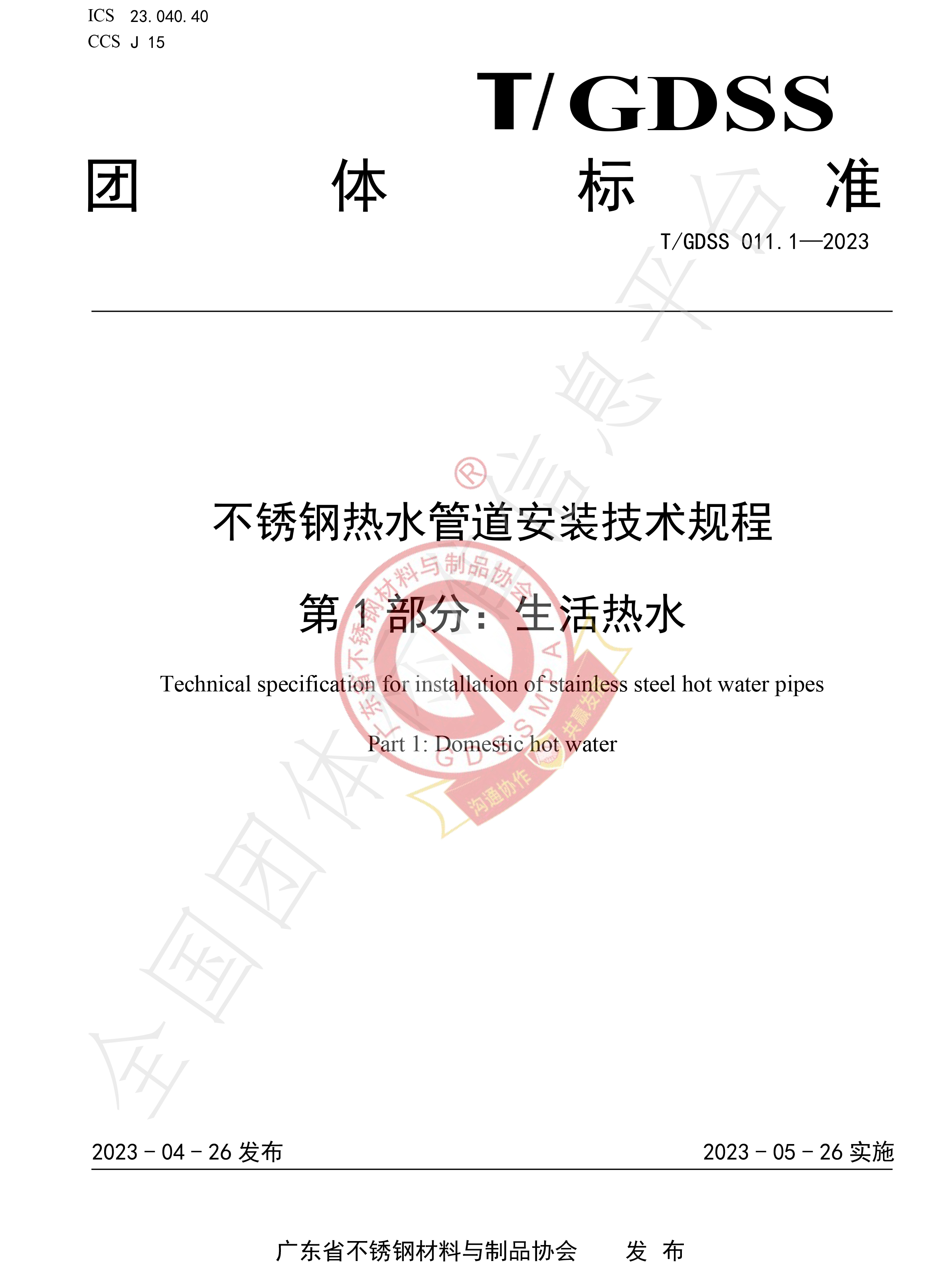 《不锈钢热水管道安装技术规程》与《不锈钢消防管道安装技术规程》团体标准明确了不锈钢水管安装的各个方面。通过两个团体标准,明确了不锈钢水管的管材、管件、配件的选用,排水、防雷、防火、消防等标准规范以及施工安装要点,为遍布全国城乡的广大不锈钢水管经销安装人士,提供了简明直观的技术依据。
