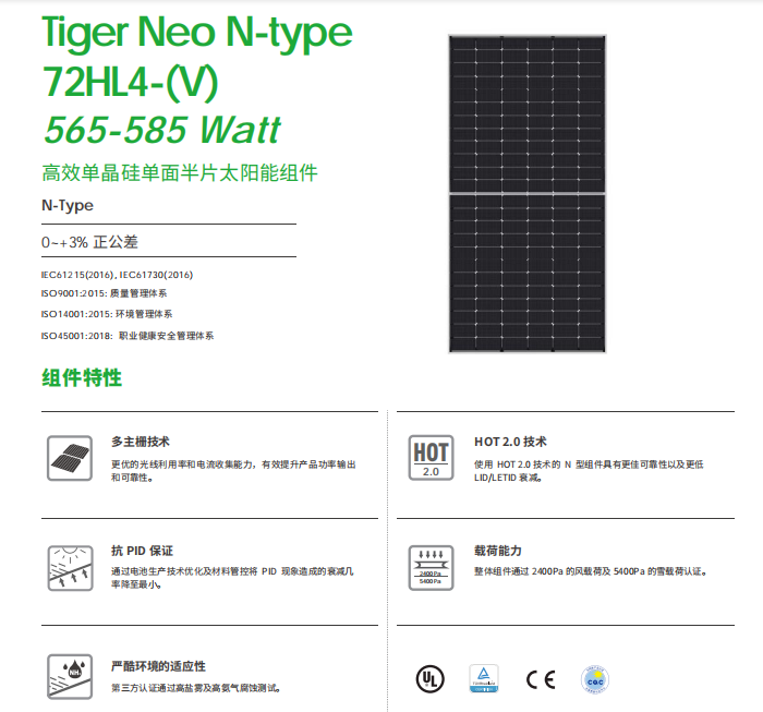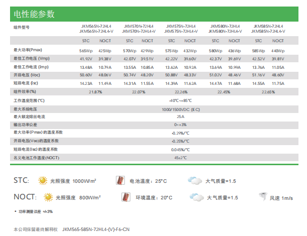 产品名称:晶科565-585N高效单晶硅单面半片太阳能组件