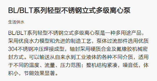 产品名称:新界BL(T)轻型不锈钢立式多级离心泵