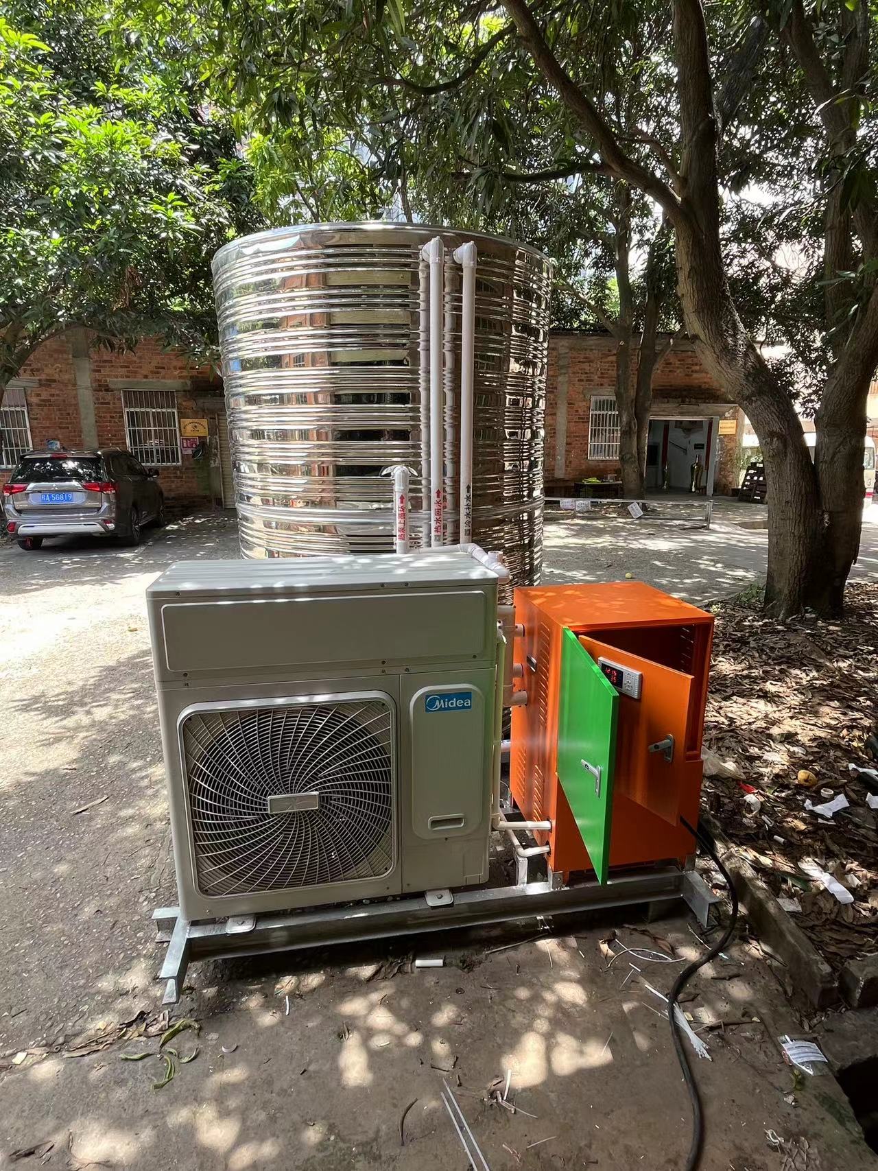 空气源热泵热水机组采用直接补充冷水进机组的供水方式,可降低整个系统的蒸发温度、冷凝压力,这样可以延长压缩机使用寿命。动力源、控制源使用防水防尘设计,整体美观。占地空间小,可安装在屋顶、阳台、庭院等位置,不破坏现有建筑的外观形象。