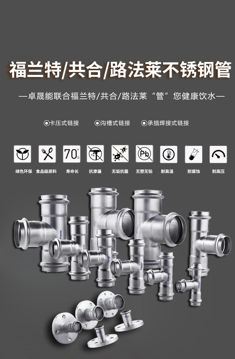 卓晟能作为综合能源提供商,致力全国饮水健康,专注用水安全,联合浙江福兰特有限公司、浙江路法莱管业科技有限公司、浙江共合实业有限公司等全国知名不锈钢管件企业,运用最前沿生产装备与技术工艺,推出不同品牌、不同规格的薄壁不锈钢管,推出的不锈钢管使用寿命长,使用年限可超过70年;保温性强,能在-40℃~120℃内长期使用;抗压性强,工作压力可达2.5MPA以上,高楼层二次供水不成问题;而且还可以回收利用。因此不锈钢管在提高健康饮水质量上发挥无可比拟的作用,是21世纪真正绿色管材。