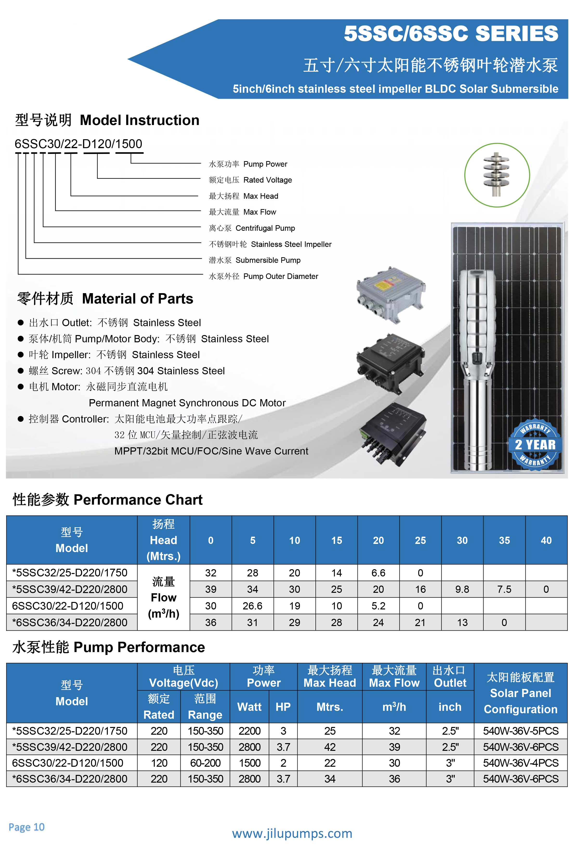 产品名称:五寸/六寸太阳能不锈钢叶轮潜水泵