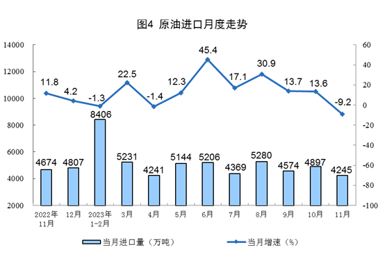 进口数据来源于海关总署,其中2023年11月份数据为快讯数据。