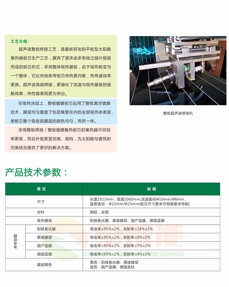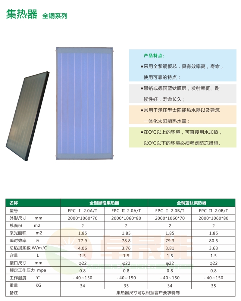 产品名称:全铜平板集热器